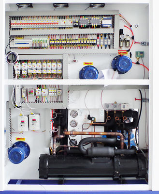 테스트 룸은 상단에 있으며 그 아래에는 냉각 시스템이 있습니다.뒷면에는 배전 제어 장치가 있습니다.전면은 메인 컨트롤 패널이고 확장된 패널은 오른쪽 후면에 있습니다.문이 오른쪽에서 왼쪽으로 열립니다.테스트 공간의 뒤쪽에는 공기 순환 채널과 에어컨 시스템이 있습니다.